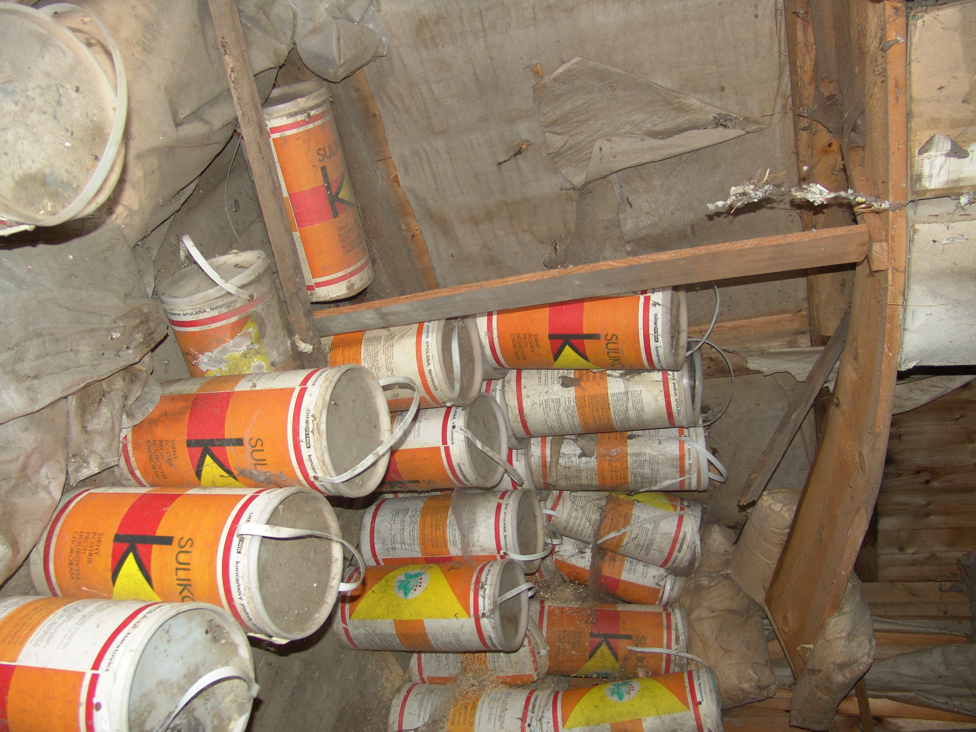 Stav objektov nevyhovujúceho skladu (stav murív, podláh, strechy...) v ktorom sú uskladnené chemické látky.
