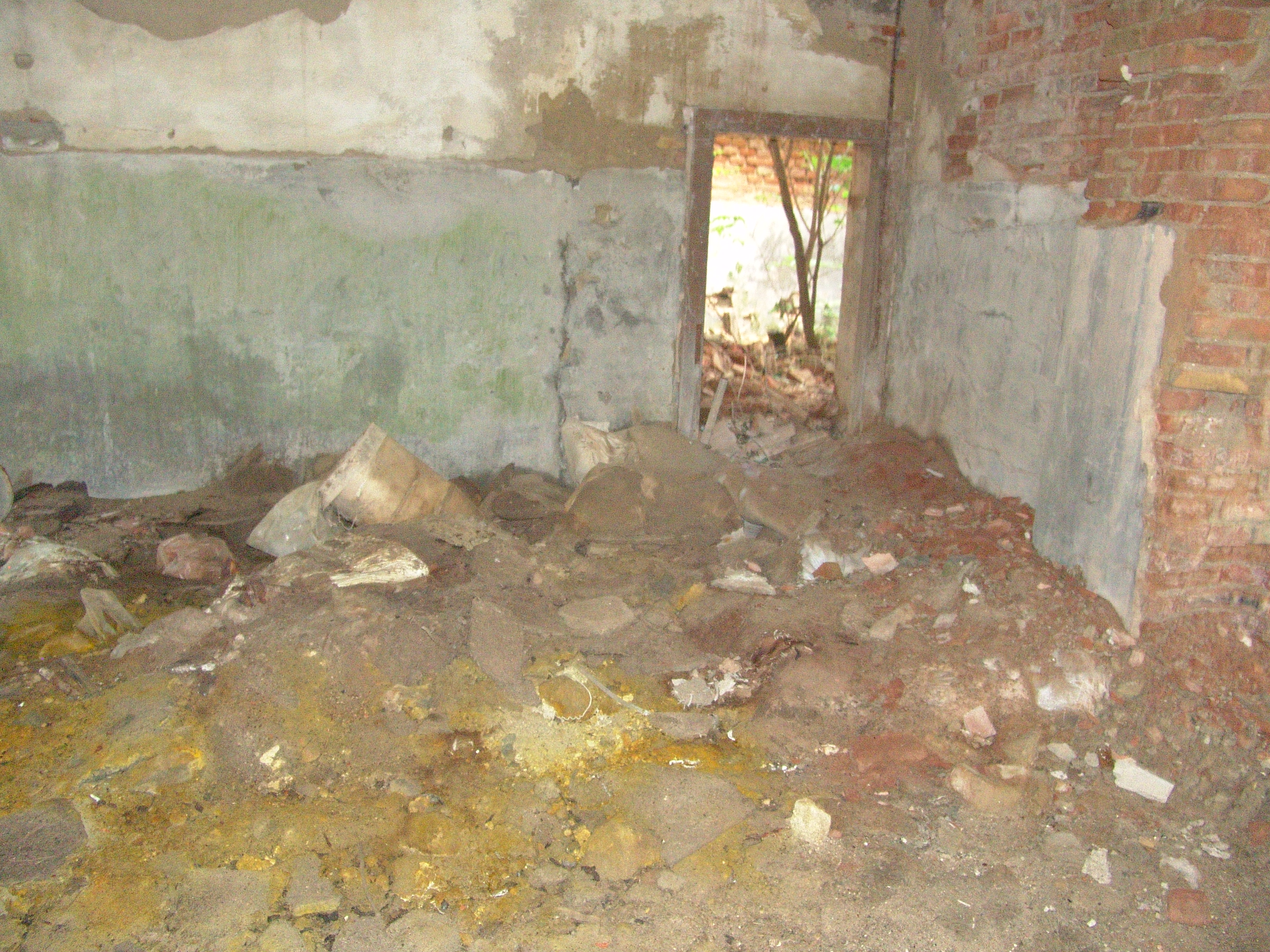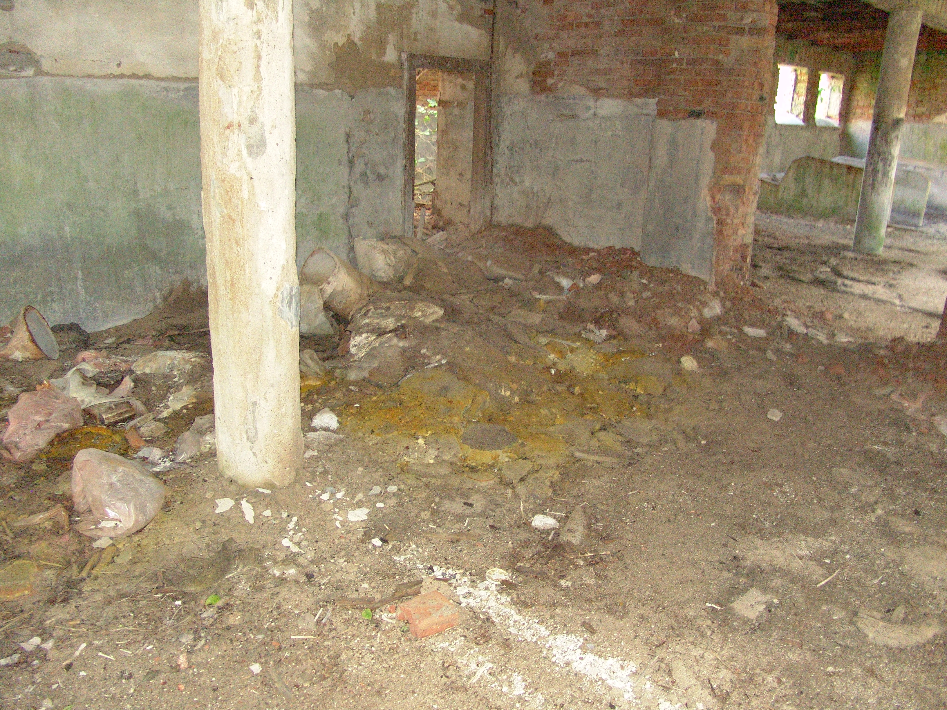 Popis: Pohľad na zvyšky budovy skladu agrochemikálií.