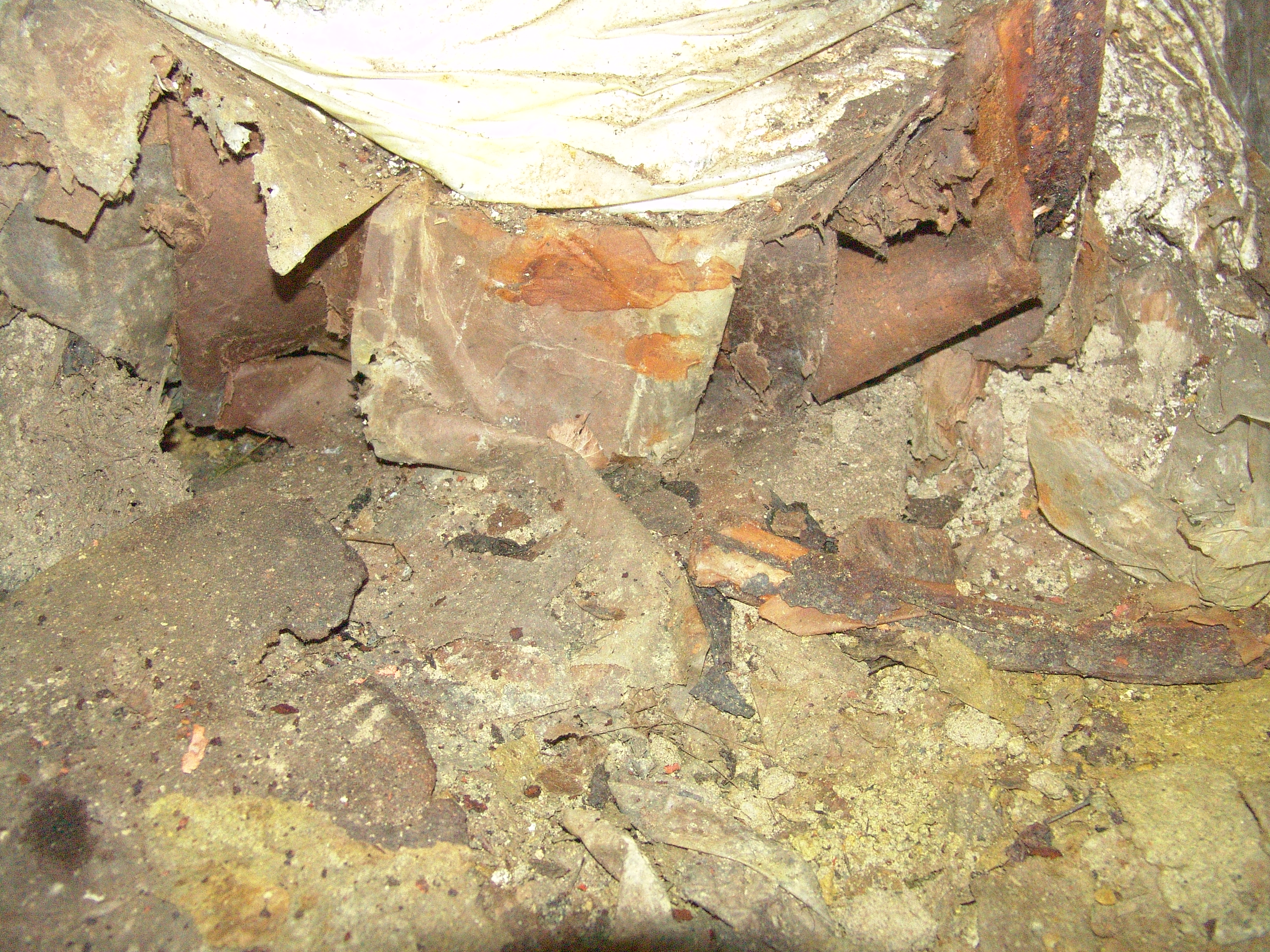 Stav objektov nevyhovujúceho skladu (stav murív, podláh, strechy...) v ktorom sú uskladnené chemické látky.