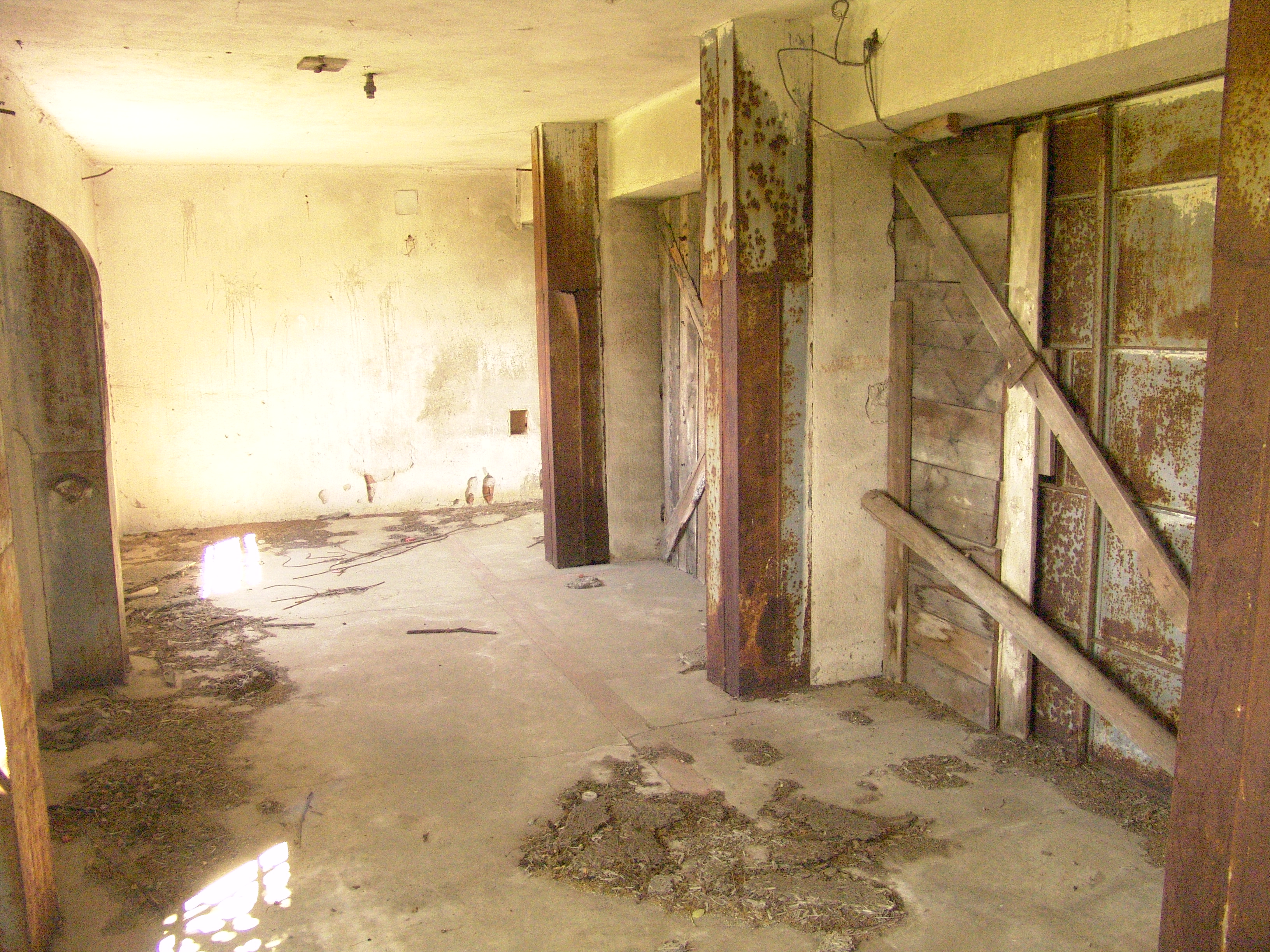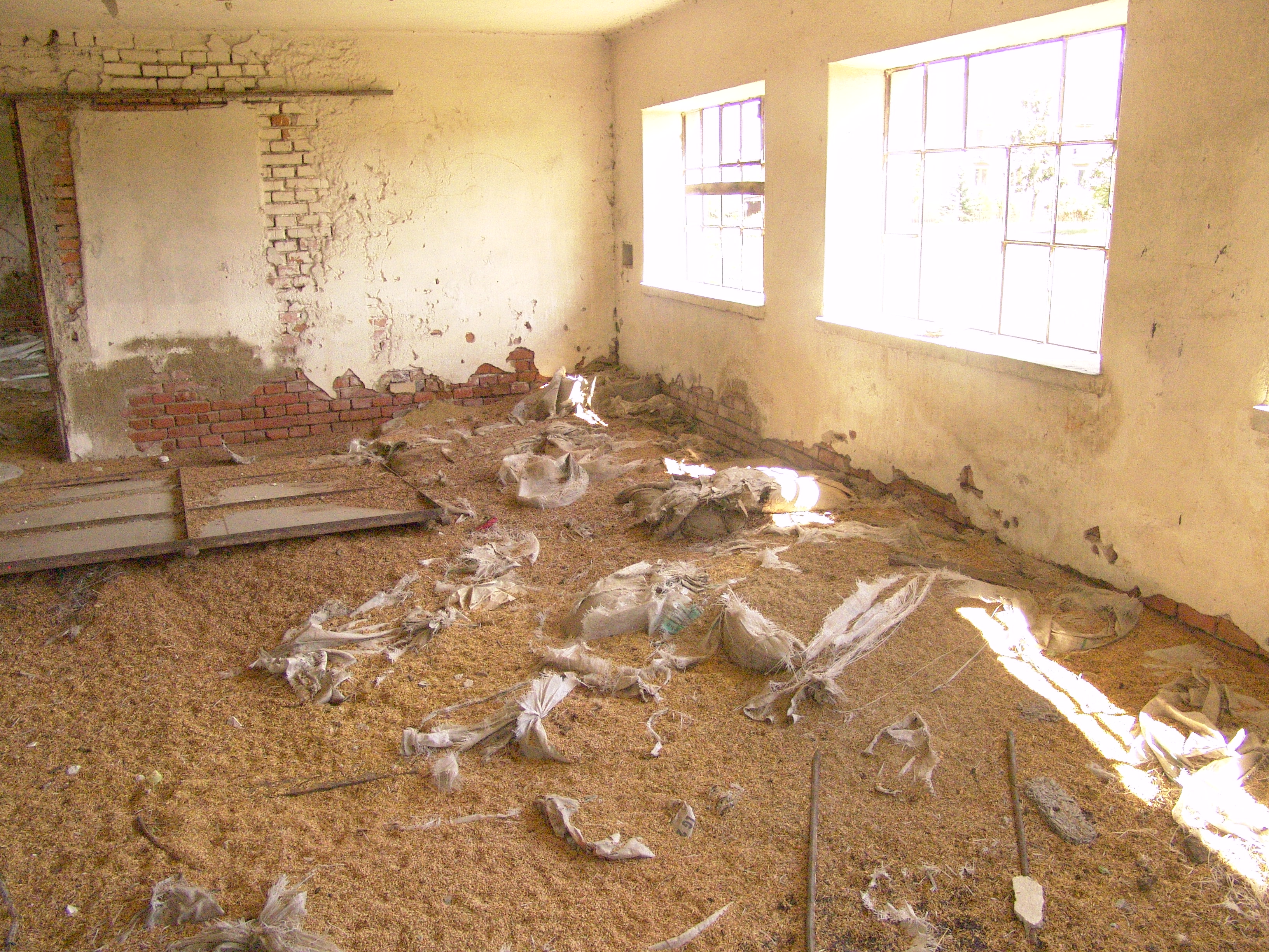 Popis: Pohľad do vnútra bývalého skladu agrochemikálií.