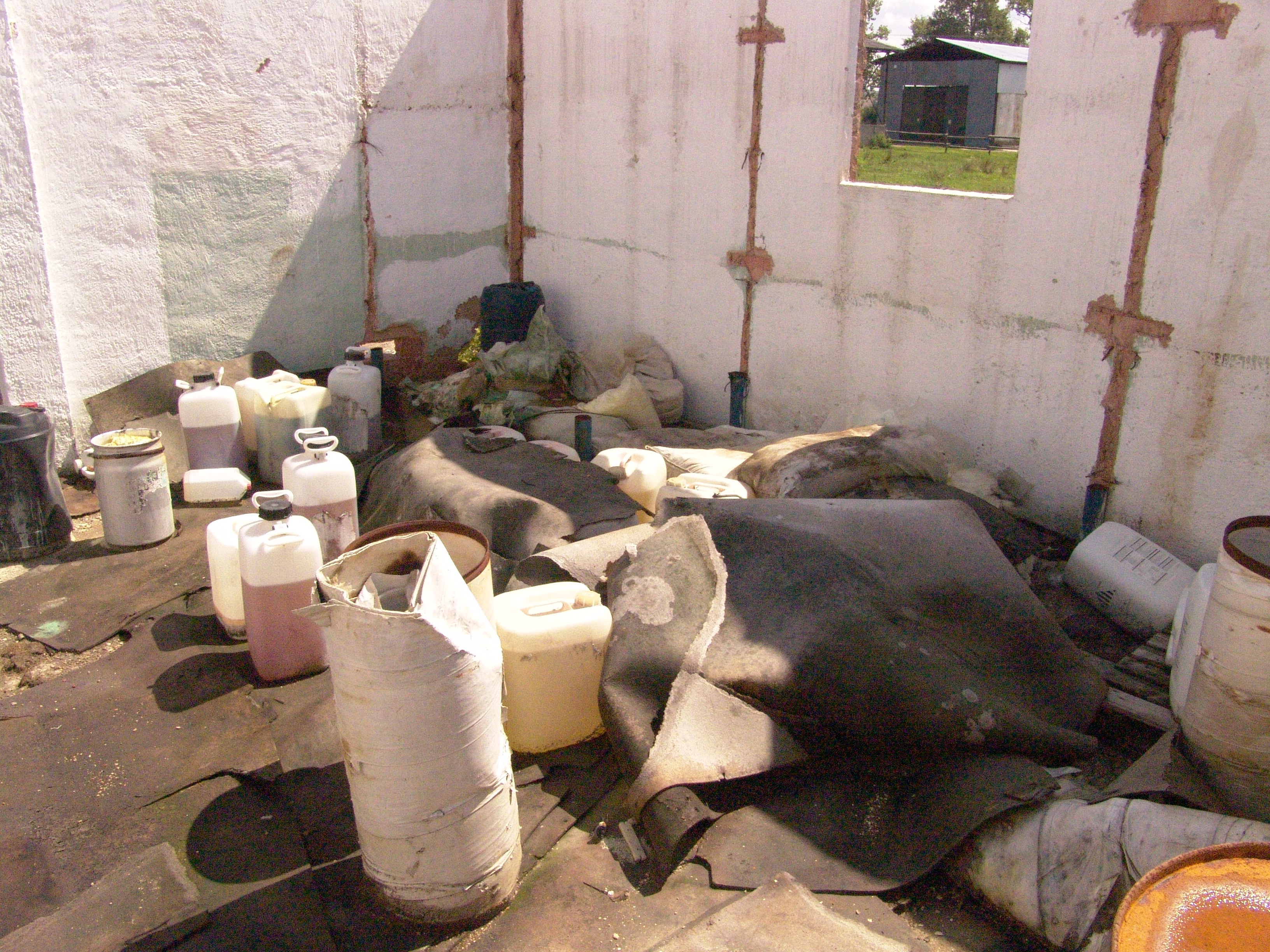 Z troch objektov identifikovaných v ISEZ bol pri obhliadke nájdený iba jeden. Zabezpečený sklad sme vôbec nenašli. Otvorené priestranstvo sme identifikovali a odpad bol už asi čiastočne odvezený, v zemine ale vidieť zvyšky obalov a možno aj rozsypané pesticídy.