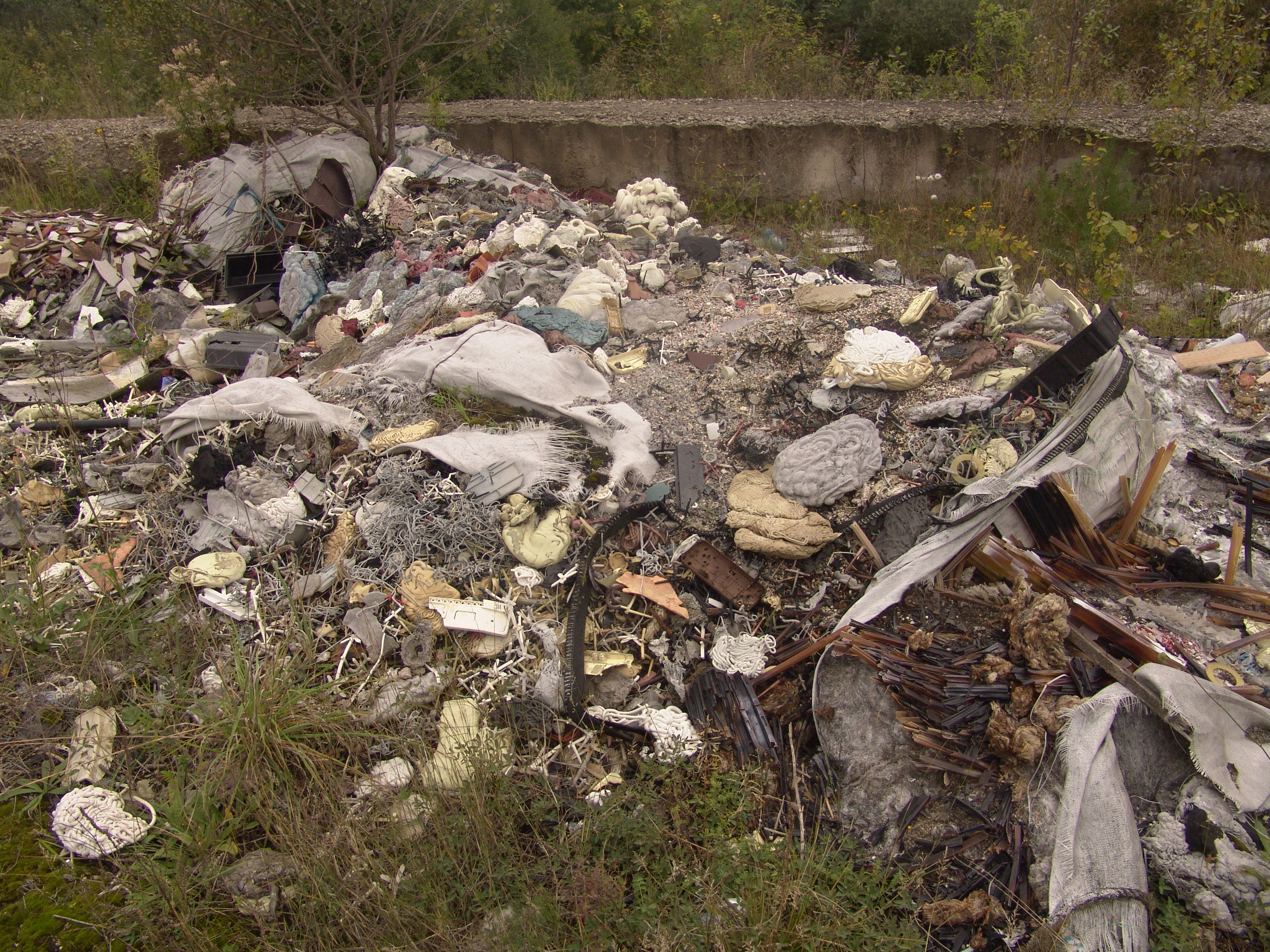 Popis: Pohľad na voľne roztrúsené agrochemikálie a iný odpad.