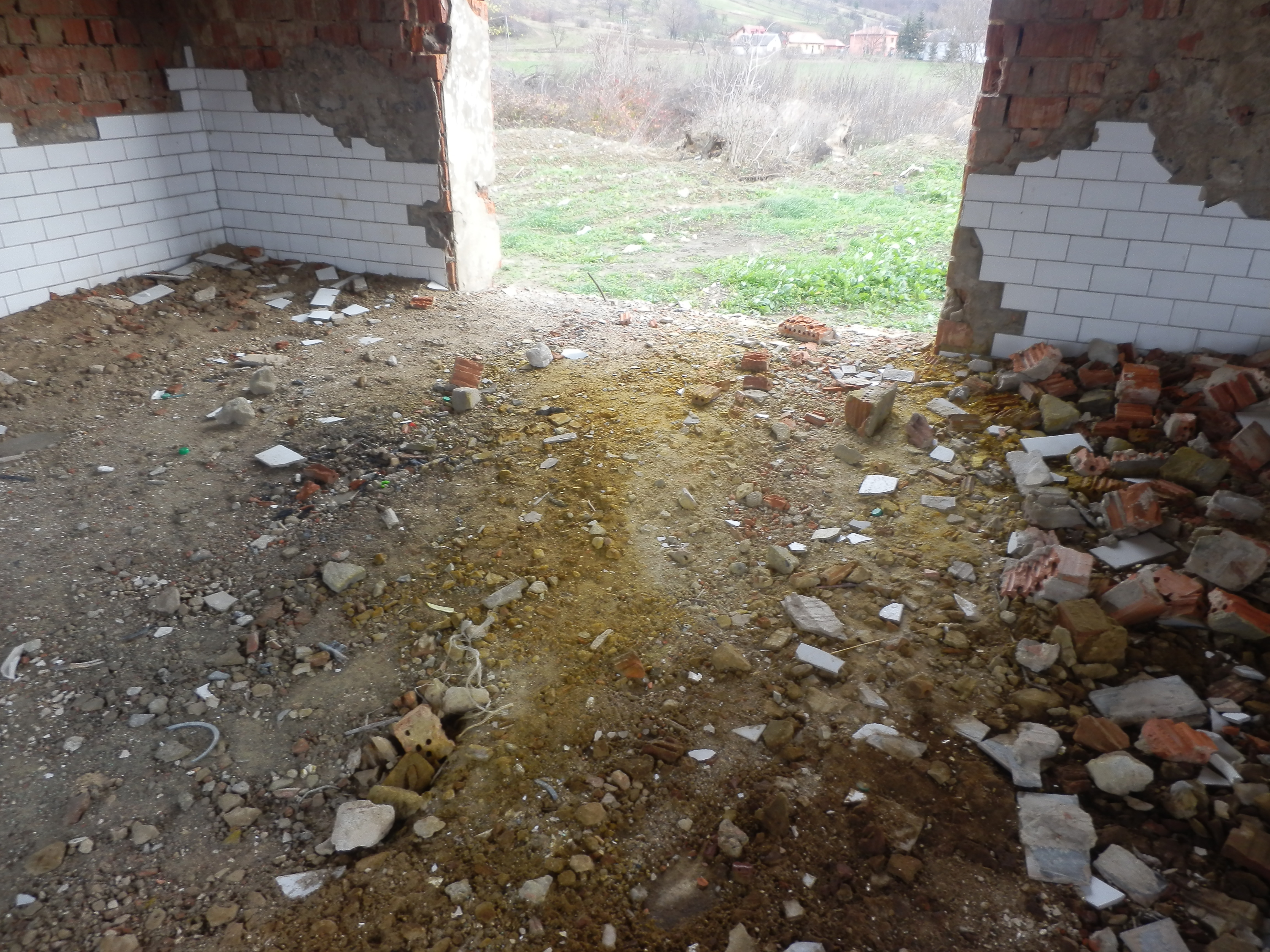 Podlaha objektu bývalého skladu agrochemikálií je pôvodná, nachádzajú sa na nej zvyšky stavebných materiálov, na ktorých sú vizuálne badateľné stopy po agrochemikáliách (sfarbenie do žlta).