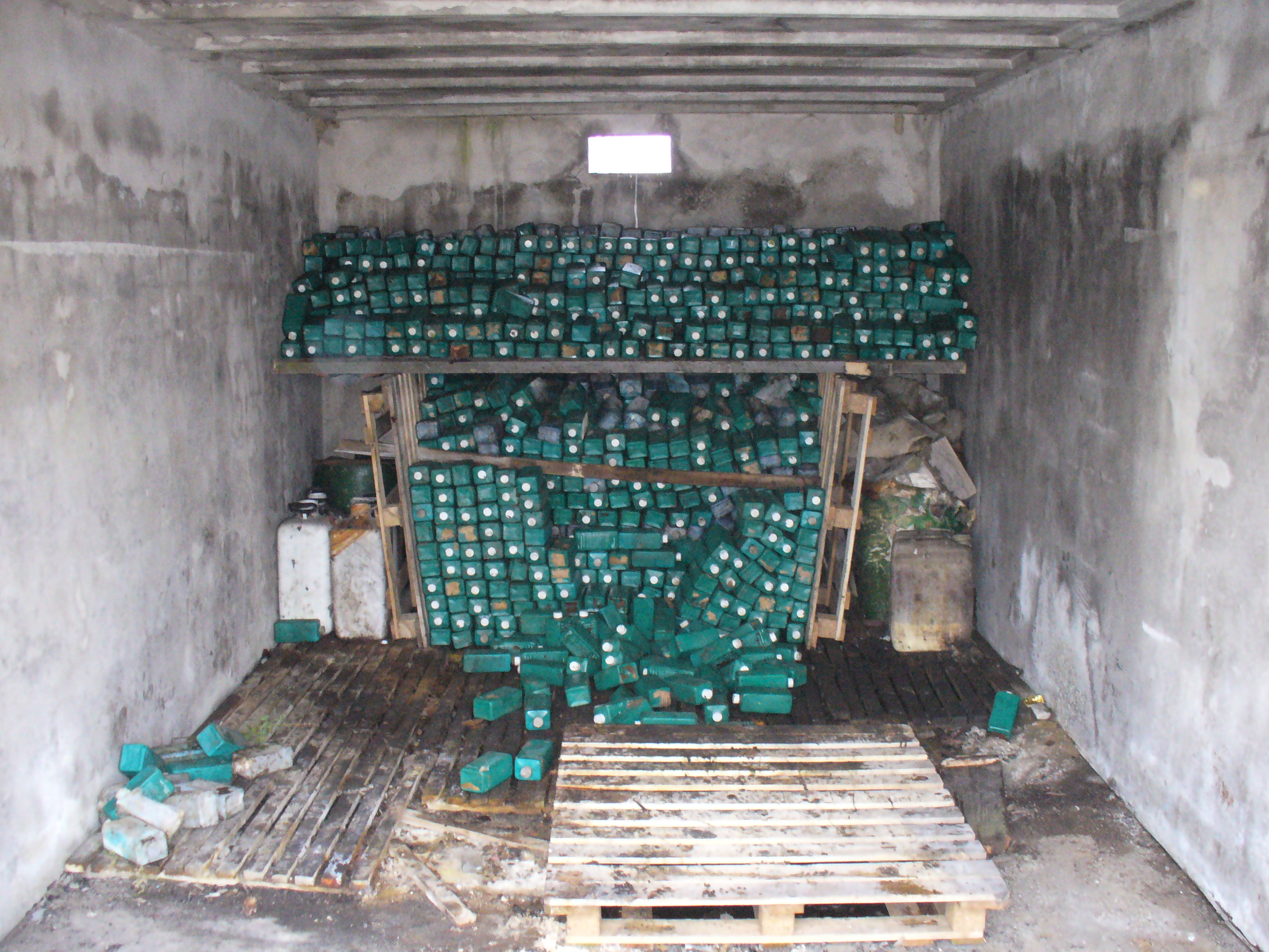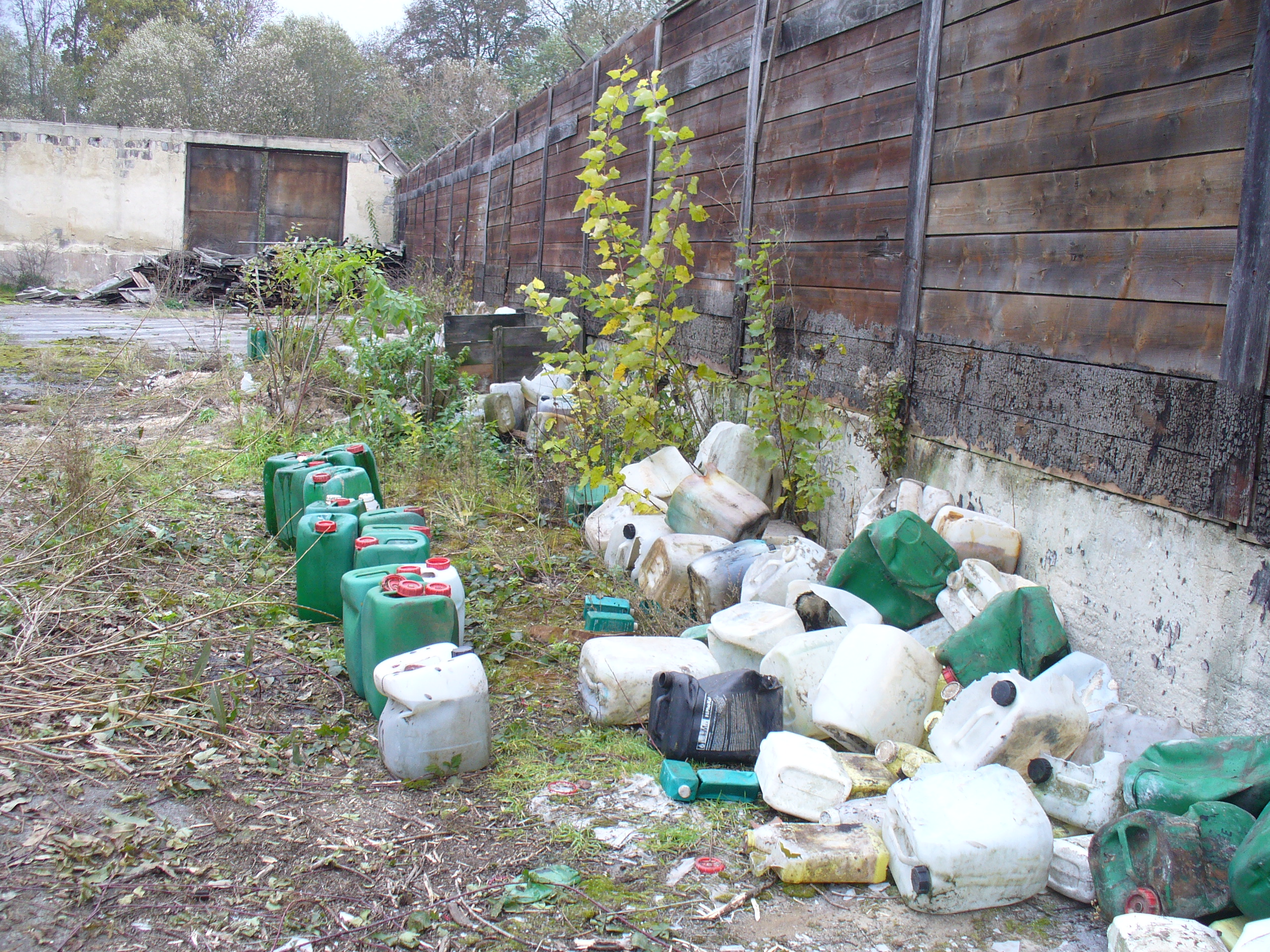 Popis: Časť chemikálií uložená do nezastrešeného priestoru.