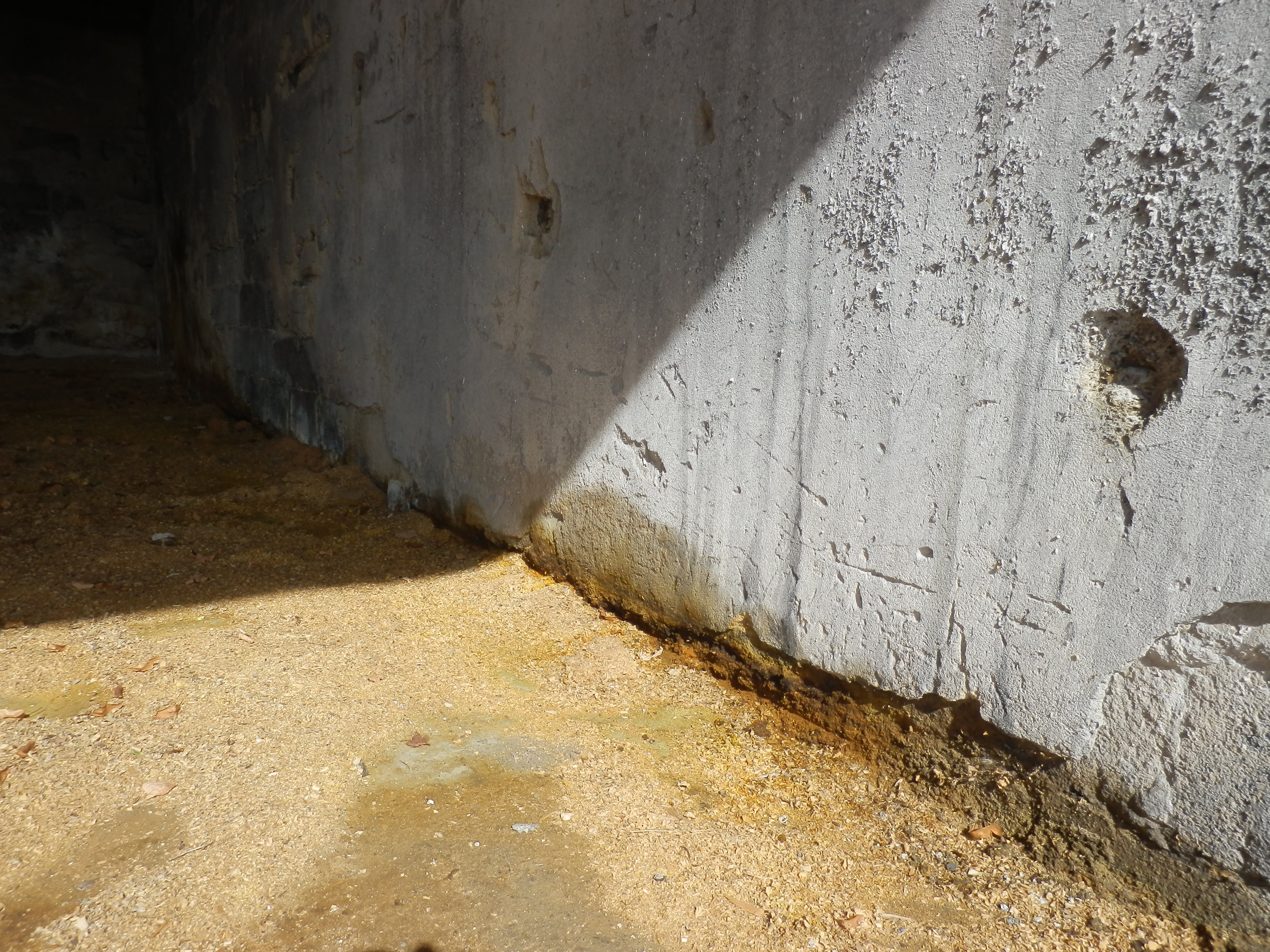 Popis: Detailný pohľad na stenu a podlahu kontaminované agrochemikáliami.