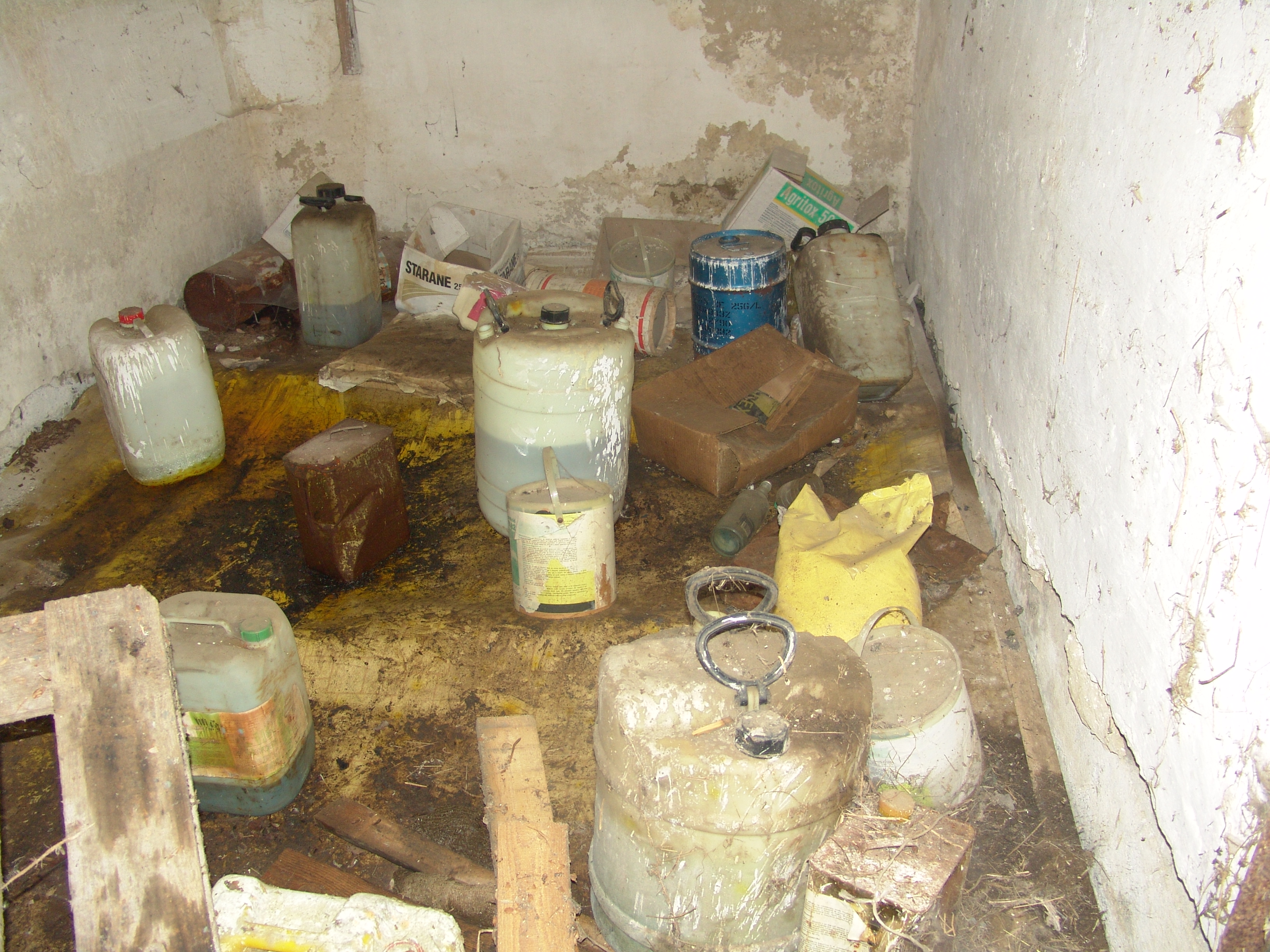 Zadná malá miestnosť, rozmery 5 x 2,5 m, v nej sa tiež nachádza väčšia časť agrochemikálií tuchých aj kvapalných priamo na podlahe resp. PVC krytine.