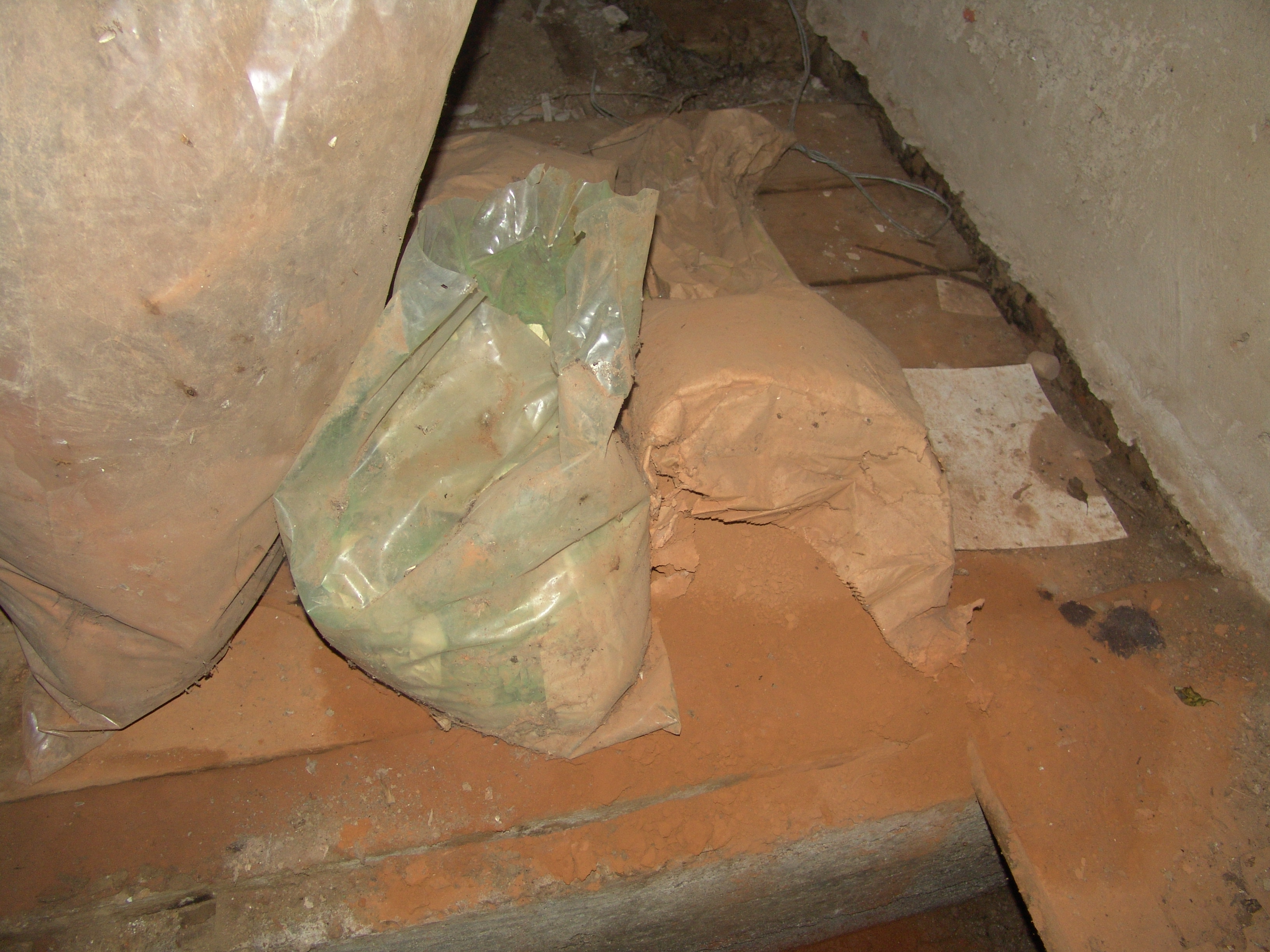 Stredná miestnosť, rozmerovo najväčšia a prázdna, len ojedinele neznáme vrecia s farebným práškom.