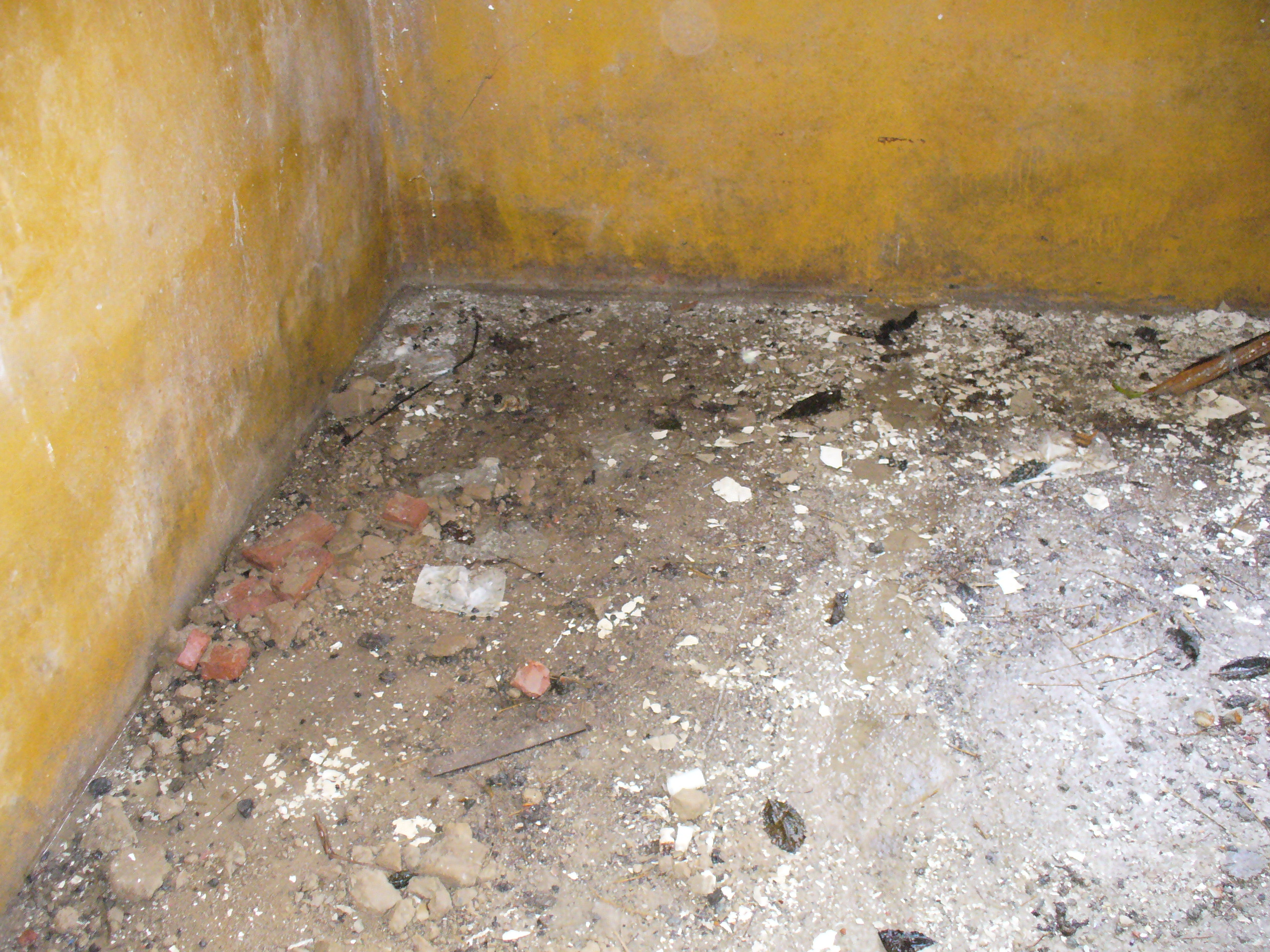 Stav objektov nevyhovujúceho skladu (stav murív, podláh, strechy...) v ktorom sú uskladnené chemické látky.